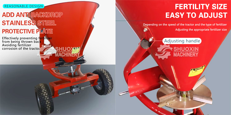 Поліпшення ефективності: Порівняно з ручними методами ефективність роботи розповсюджувачів, встановлених трактором, може бути підвищена на 3-5 разів.