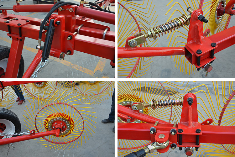 Продукт використовує колісну конструкцію, щоб граблі сіна легко рухалися по полю, будь то плоскі сільськогосподарські угіддя чи злегка хвиляста місцевість, може бути гнучким. Крім того, оснащений простим удосконаленим механізмом рульового управління, користувачі можуть легко відрегулювати напрямок граблі відповідно до фактичних потреб, щоб досягти точної роботи.